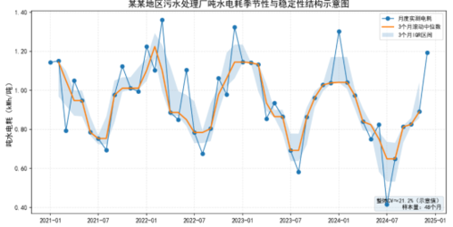 污水处理行业成本预算绩效分析专栏十:基于数理统计方法下的成本预算绩效分析发表时间:2025-11-24 15:49 前言 2024年以来,成本预算绩效管理在全国超半数省市开展试点,成效显著。我司团队有幸深度参与北京市、湖南省、安徽省、海南省、陕西省、河南省、内蒙古自治区等多个地区污水处理行业的成本预算绩效分析工作,足迹覆盖近百座污水处理厂。从“按量付费”到“按效付费”的机制突破,从财政资金“精准滴灌”到企业效能“提质升级”,从“规模追赶”向“质量引领”的跨越,生动诠释了“绿水青山就是金山银山”的发展理念。与此同时,行业对绩效分析的科学性、精准性提出了更高要求。本期聚焦“数理统计视角下的成本预算绩效分析”,针对污水厂运行数据多阶段、非线性等复杂特征,构建融合数理统计与机器学习的方法论体系,推动绩效分析从“经验判断”转向“结构辨识”,为预算审核与效能提升提供科学支撑。 一、研究背景与方法论范式的转变在现代公共财政治理框架中,污水处理行业的成本预算绩效分析已从“定额+经验判断”的初级形式,逐渐过渡到强调机制识别、结构辨别与风险预警的新阶段。随着污水处理工艺体系结构复杂度的提升,运行数据呈现出多阶段性、非线性、季节性与耦合性共存的统计特征,传统核算方法难以解释成本行为背后的运行逻辑,更无法满足财政部门对于科学性、透明性与前瞻性治理能力的要求。 基于此,本研究构建了一套融合数理统计方法与机器学习思想的综合方法论体系,将污水处理系统的运行机理转译为可解释的统计结构,在不依赖敏感工艺参数的前提下,实现对成本结构、投加规律与潜在风险的科学识别。该体系的核心特征在于强调结构、强调逻辑、强调机制,而非依赖单个模型或经验参数,从根本上推动预算绩效分析的范式转变。 二、数据结构的恢复:从记录数据到结构数据污水处理行业的运行数据具有天然复杂性,包括跳点、缺失、极端值、采样不连续、统计口径不一致等特征。若沿用传统的机械式清洗方法,极易破坏变量之间的自然结构,造成错误的趋势判断和误导性的成本解释。 本研究首先通过统计分布与工程逻辑相结合的“数据清理—结构还原”方法,对原始数据进行结构性恢复。该方法包括异常行为识别、分布重建、局部插补与链式填补等处理,使数据的自然波动纹理得以保留,使变量之间的关联结构得以恢复,使运行系统的真实面貌在统计意义上得以再现。数据的结构化处理是整个体系的基础,也是后续辨识成本结构与投加规律的前提。 三、变量关系的结构识别:以模型竞争揭示非线性机制污水处理过程的运行逻辑决定了变量关系不可能呈现简单的单线性模式。随着负荷、工况与季节变化,系统呈现出多阶段、非线性、耦合多维度的动态规律。 为识别这种结构性关系,本研究采用机器学习框架下的多模型竞争与交叉验证方法,将模型作为结构探测器而非预测器。通过线性、多项式、局部加权和规则化模型在不同区间的拟合差异,可以揭示低负荷区间的基耗控制特征、中负荷区间的比例型运行模式以及高负荷区间的边际能耗抬升效应。模型之间的不一致性本身就是对系统机制的揭示,使运行结构自然显现于统计空间中,而无需依赖工艺图纸或内部运行策略。 四、边际作用与运行机制的剖析:业务区间敏感性分析传统预算分析依赖平均值与相关系数,但污水处理系统的运行规律往往藏在边际变化中,而非平均趋势中。本研究引入偏依赖思想构建业务区间敏感性曲线,系统刻画变量在业务量区间中的边际影响方向、影响强度与临界点变化。 敏感性曲线能够揭示污染物负荷变化的临界区段、工艺调整带来的结构性折线、运行策略优化前后的突变点以及水温、水质变化引起的交互效应,使运行机制的变化过程在统计结构中直观呈现,为预算审核提供更稳健的机制证据。 五、季节节奏的结构化识别:基于分布模数的季节性建模