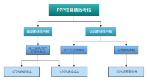 1、按效付费首先,需要区分可用性服务费和运营服务费。可用性服务费为产出和维持项目资产可用性而支付的费用,用于覆盖建设成本以及合理利润;运营服务费则是覆盖项目日常运营维护的费用,一般占项目收益的比重较小。 对于项目公司而言,通常只要保证可用性服务费的获取,即可赚取足够的利润,政府方无法有效保证项目公司后期运营管理的质量。因此绩效考核与建设成本的强行挂钩,可以有效避免PPP项目“重建设轻运营”的现象。以某市过江隧道PPP项目为例,总投资约25.44亿元,合作期28年(建设期3年,运营期25年),采用政府付费方式,合作期内政府付费总额约76.24亿元,其中:运营维护服务费合计约7.38亿元,占总付费金额的比例为9.68%;可用性服务费合计约68.86亿元,占总付费金额的比例约为90.32%亿元。 其次,需确定项目建设期成本的取值口径。目前,PPP项目建设期成本的确定大致有项目建设的动态总投资、政府直接支出责任和可用性服务费总额三类标准。在政府付费模式下,项目建设动态总投资<可用性服务费总额<政府直接支出责任;在可行性缺口补助模式下,项目建设动态总投资<政府直接支出责任或可用性服务费总额;在一些可行性缺口较小的项目中,很可能出现可用性服务费总额大于可行性缺口补助(即政府直接支出责任)的情形。由于PPP项目入库和管理要求日趋严格,在没有明确基数的情况下,很多地区按照从严理解,按照可用性服务费挂钩要求执行。 《政府和社会资本合作(PPP)项目绩效管理操作指引》(财金〔2020〕13号)中要求,原则上项目建设期应结合竣工验收开展一次绩效评价,项目运营期每年度应至少开展一次绩效评价;同时要求政府付费和可行性缺口补助项目,政府承担的年度运营补贴支出应与当年项目公司绩效评价结果完全挂钩。结合以上要求,可建立如下同时能够满足2017年92号文和2019年10号文要求的政府付费和可行性缺口补助项目的绩效考核体系: